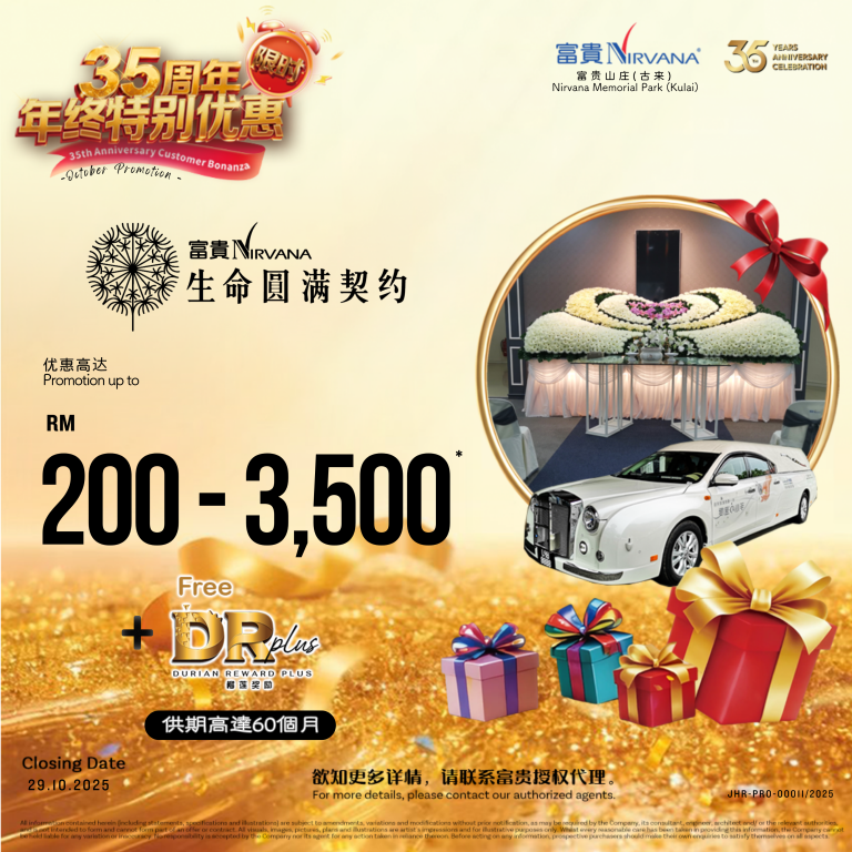 生命圆满契约旨在提供专业服务与优质产品及免除葬礼繁琐事宜,并确保葬礼过程顺利进行。契约分成不同的价格,以及设有个人化定制服务,可以让你选择你想要的殡仪方式。